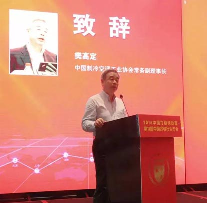 中國(guó)制冷空調(diào)工業(yè)協(xié)會(huì)常務(wù)副理事長(zhǎng)樊高定為大會(huì)開(kāi)幕致辭。