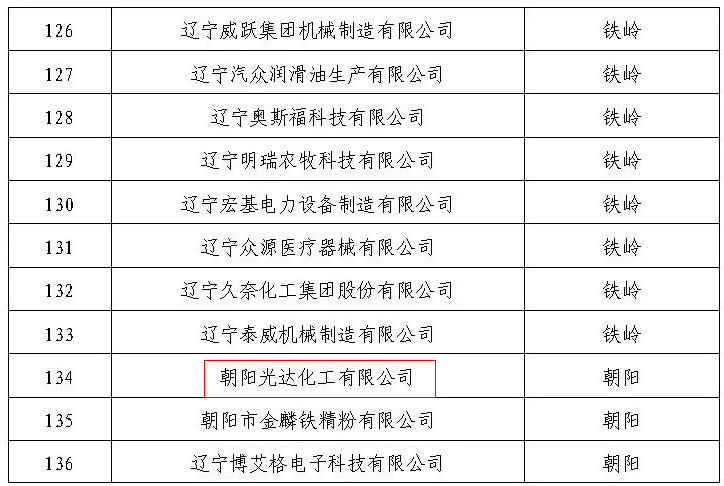 咱朝陽(yáng)市的光達(dá)化工榜上有名!