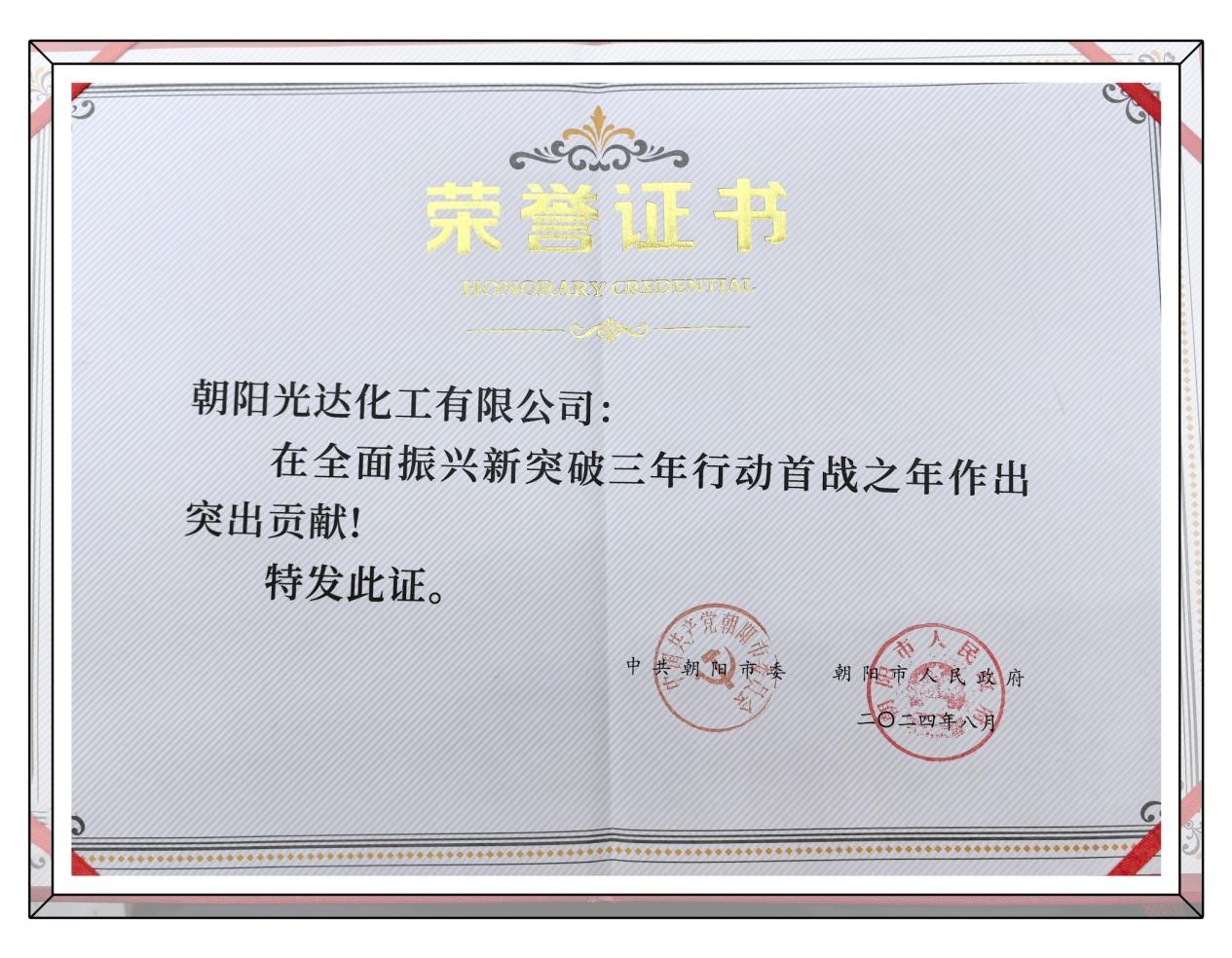 此次表彰不僅是對(duì)光達(dá)化工過去成績(jī)的認(rèn)可,更是對(duì)其未來發(fā)展的一種期待。站在新的起點(diǎn)上,光達(dá)化工將以此次表彰為契機(jī),繼續(xù)發(fā)揚(yáng)敢闖敢干的精神,堅(jiān)持高質(zhì)量發(fā)展道路,為朝陽(yáng)市乃至全國(guó)的新型工業(yè)化建設(shè)做出更大貢獻(xiàn)。