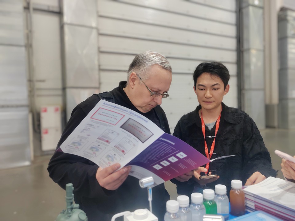 展會期間,冰河冷媒憑借低冰點、高導熱性、化學穩(wěn)定性強的產(chǎn)品優(yōu)勢,以及無腐蝕、寬溫域、環(huán)保安全的核心特性,成功吸引眾多俄羅斯及東歐制藥企業(yè)駐足咨詢,團隊人員針對合成控溫、低溫保存、精準溫控等應用場景,提供定制化技術解答,充分展現(xiàn)產(chǎn)品在解決傳統(tǒng)載冷劑腐蝕設備、效能低下等痛點上的顯著成效,助力制藥企業(yè)實現(xiàn)降本增效與合規(guī)生產(chǎn)的雙重目標。