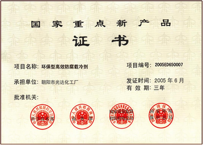 國(guó)家重點(diǎn)新產(chǎn)品證書