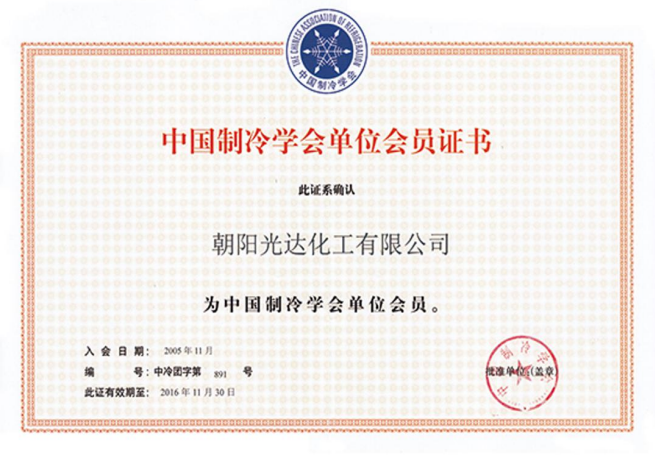 中國(guó)制冷學(xué)會(huì)單位會(huì)員證書